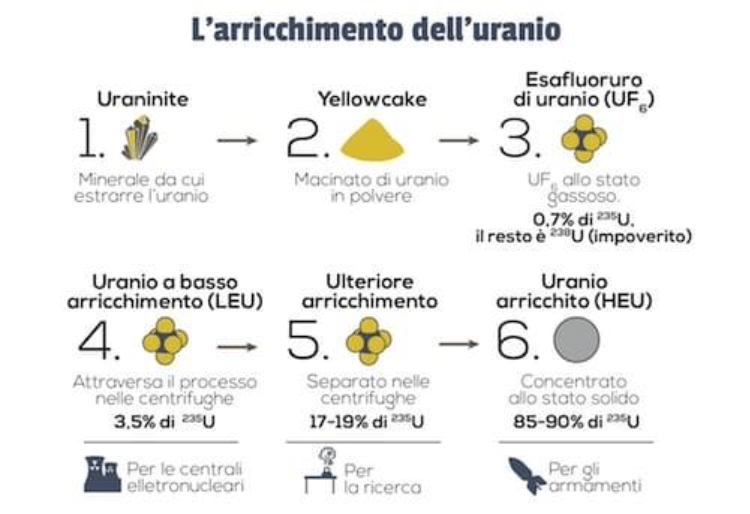 Il fulcro dell’operazione ha riguardato gli impianti di arricchimento del combustibile nucleare di Natanz, Isfahan e Fordow. In ciascuno di questi siti sono presenti centrifughe fondamentali per il processo di arricchimento dell’uranio. Secondo l’Agenzia Internazionale per l’Energia Atomica (AIEA), che ha accesso ispettivo e telecamere installate negli impianti, l’arricchimento dell’uranio iraniano aveva raggiunto livelli prossimi al 60%, ben al di sopra delle soglie per uso civile, ma ancora sotto il 90% necessario per la costruzione di un’arma nucleare. Va precisato che l’intera quantità di uranio non era arricchita a quel livello: secondo l’AIEA, circa 408 kg su un totale di 8413 kg avevano raggiunto il 60%. L’uranio a basso arricchimento (tra il 2% e il 5%) è destinato all’uso civile in centrali nucleari, mentre quello tra il 10% e il 20% può essere utilizzato per applicazioni militari (non per la costruzione di armi), mediche o di ricerca. Secondo l’articolo pubblicato su Il Foglio di Luca Romano, per l’Iran sarebbe bastato poco tempo per passare dal 60% al 90%, poiché gli ultimi stadi del processo di arricchimento sono più rapidi rispetto a quelli iniziali. Tuttavia, il possesso di uranio arricchito al 90% non basta per costruire un’arma nucleare: è necessario disporre anche del meccanismo di innesco. Esistono due tipologie principali di innesco: quello a pistola e quello a implosione. L’innesco a pistola è più semplice e consiste nello sparare una massa subcritica di uranio contro un’altra per raggiungere la massa critica. Questo metodo richiede uranio altamente arricchito (HEU) e presenta però importanti limiti: è ingombrante, pesante e non facilmente montabile su un missile. La sua costruzione potrebbe richiedere almeno due mesi. L’innesco a implosione, più sofisticato, utilizza esplosioni convenzionali per comprimere simmetricamente una massa subcritica, rendendola critica. Sebbene più complesso da realizzare, è più adatto alla miniaturizzazione necessaria per armamenti missilistici, ma potrebbe richiedere fino a diciotto mesi per essere prodotto. È importante sottolineare che l’Iran, al momento dell’attacco, non era in possesso di un’arma nucleare, ma solo di competenze e materiali che lo avvicinavano alla possibilità di realizzarne una. Costruire una bomba con innesco a pistola, anche se non lanciabile, potrebbe servire più che altro a dichiarare simbolicamente l’ingresso dell’Iran nel “club nucleare”, fungendo da deterrente politico e strategico.