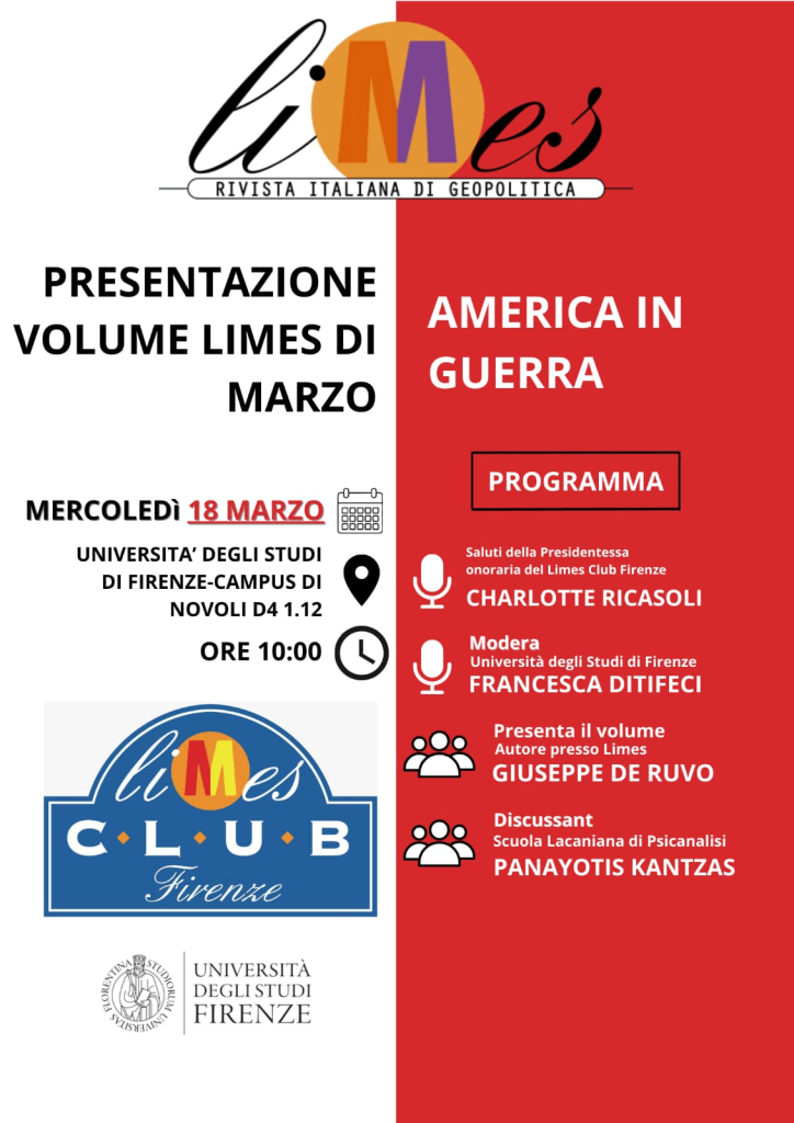 - Giornata Limes Club Firenze: incontro con Lucio Caracciolo, direttore di Limes Rivista Italiana di Geopolitica. Martedì 18 aprile 2023 ore 10 presso l’aula D6106 al Polo delle Scienze Sociali (Via delle Pandette).